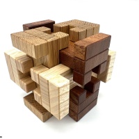 +Burr (Plus Burr) is a six-piece burr in an unconventional shape designed by Stephan Baumegger in 2015. The name derives from the negative space on each assembled face which resembles the addition symbol. With a level 8.1.2 disassembly is not trivial, but not overly challenging. I recommend disassembling and scrambling the pieces for a great assembly puzzle.