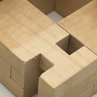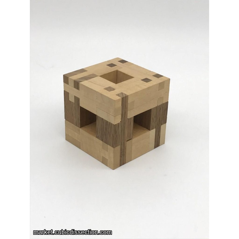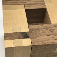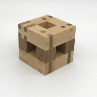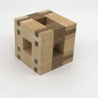 This is a fantastic puzzle design. I wish I had made more copies of it! With a staggering 10,800 solutions and only 4 constructable, it is decievingly difficult to solve...it's easy to get all but one piece together, but that last piece is the trick! It is a very fun puzzle to solve and displays very nicely because of the interesting joinery on the edges. Crafting this puzzle was a challenge, which is why the price is a bit higher then I would like. However, I think you will find the extra effort I put into it worthwhile. Many of the notches go straight up into the endgrain - this is a very difficult cut to make because if you use a saw blade it will burn the material badly. To solve that I created a series of jigs. I roughed out the vertical cuts on a table saw leaving the top and sides .01 under. The finishing cut was made with a router, resulting in clean and very accurate joinery. Since the tolerances are so accurate, I made an imperceptable taper on the horizontal cuts - the ends are .006 undersize and taper to the full .25 to aid in assembly.