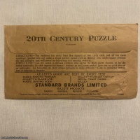 The 20th Century Puzzle is an advertising version of the classic 10-piece square puzzle.  It was used by Standard Brands Limited of Toronto, Canada, as an advertising premium for their Gillett line of baking ingredients.  The object of the puzzle, of course, is to form a perfect square using all ten of the advertising cards.  The puzzle dates from 1904.  The puzzle pieces are in SUPERB condition, and the complete envelope is in terrific condition, especially considering its age.