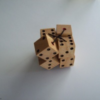 Make a 2x2x2 dice cube in a checkered pattern that holds its shape by only using two twists and one fold. The number of pips on each face must be 14.