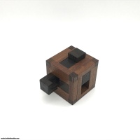 Construction wise, this puzzle took a while. Each cage is built of rectangles which are reinforced with a .05 shoulder before they are glued into halves. I also added small wenge cubes to the outside corners to create a final cube shape that looks very appealing. The burr pieces themselves are non-millable which means extra work gluing in cubes of the same wood and hand easing them with sandpaper to be perfectly flush. All in all a lot of work on this puzzle, and it shows. Fit is very very nice, not too tight and very smooth.