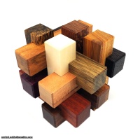 2-in-1 is a twelve piece interlocking burr with a unique solution and a couple challenges; the first puzzle is to figure out what shape it makes, and the second is to make that shape. Ingenious design using full notches makes finding a solution more difficult, as the open spaces concealed in the puzzle allow more false starts.