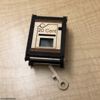 Original version of Constantin's box. This original version has the wood key and 20-cent euro coin. Goal is to open the box and free the coin.