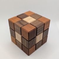 Leontev's 205 Minutes is a masterpiece in both design and construction. So named because if you make one correct move per second, non stop, it will take you 205 minutes to disassemble. This n-ary juggernaut requires over 12 thousand moves to disassemble. Once disassembled, a reset mechanism allows you to quickly bring it to the original state with only four moves. It also comes with the 136 minute piece which only requires around 8,000 moves to solve.