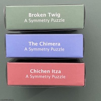 Three clever symmetry puzzles designed by the great Russian puzzle inventor Vladimir Krasnoukhov, and manufactured by RecentToys:  Broken Twig, The Chimera, and Chichen Itza.  All three puzzles come in their original packaging.  I am offering ALL THREE puzzles at a BARGAIN opening bid of $18.  I will be happy to supply the solutions to any and all three puzzles to the successful bidder.