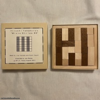 Micro Stripe 66 --- Designed by the prolific Hiroshi Yamamoto, produced by Lixy Yamada and Koichi Utsumi, exchanged by Joe Becker. Goal is to pack the tray with the 12 double-sided (light and dark woods) pieced to show six alternating (dark and light) stripes. The solution is unique.