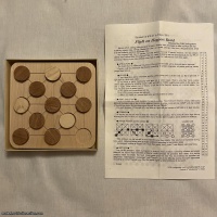 Flip It on Hoppers Board --- Designed by the great Nob Yoshigahara, produced by Woodpecker Hikimi, exchanged by Nob. Multiple challenges combining elements and rules from two of Nob's earlier designs as sold by Binary Arts, Flip It and Hoppers.