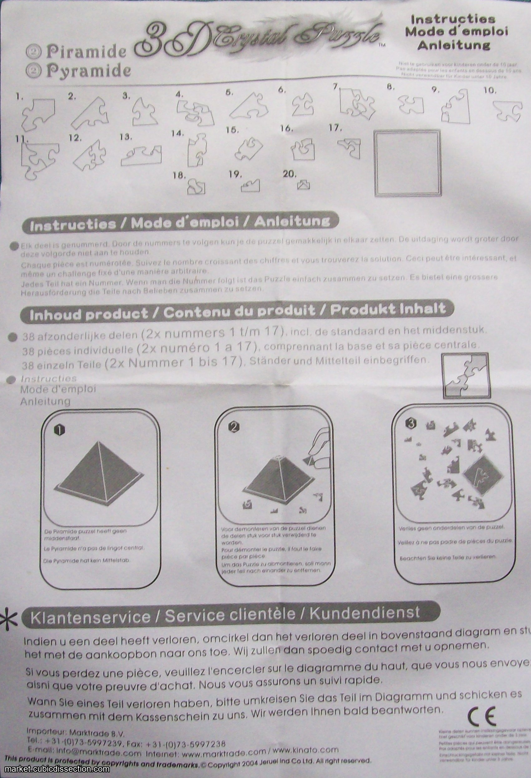 The 3D Crystal Puzzle Pyramid is a sleek, translucent puzzle with 38 unique interlocking pieces. Take puzzling to a whole new dimension with this unusual crystal puzzle. Enjoyable to work on, challenging to complete, fun to display!