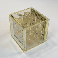 XMatrix's Cubus is designed by Jeremy Goode and was an IPP Design Competition entry in 2011.  The goal is to guide the ball from one side to the opposite side.  I don't often have the patience for this route-finding maze challenges, but Cubus is appropriately sized to be enjoyable for me.  A review can be found here: http://mypuzzlecollection.blogspot.com/2010/12/xmatrix-quadrus-cubus.html