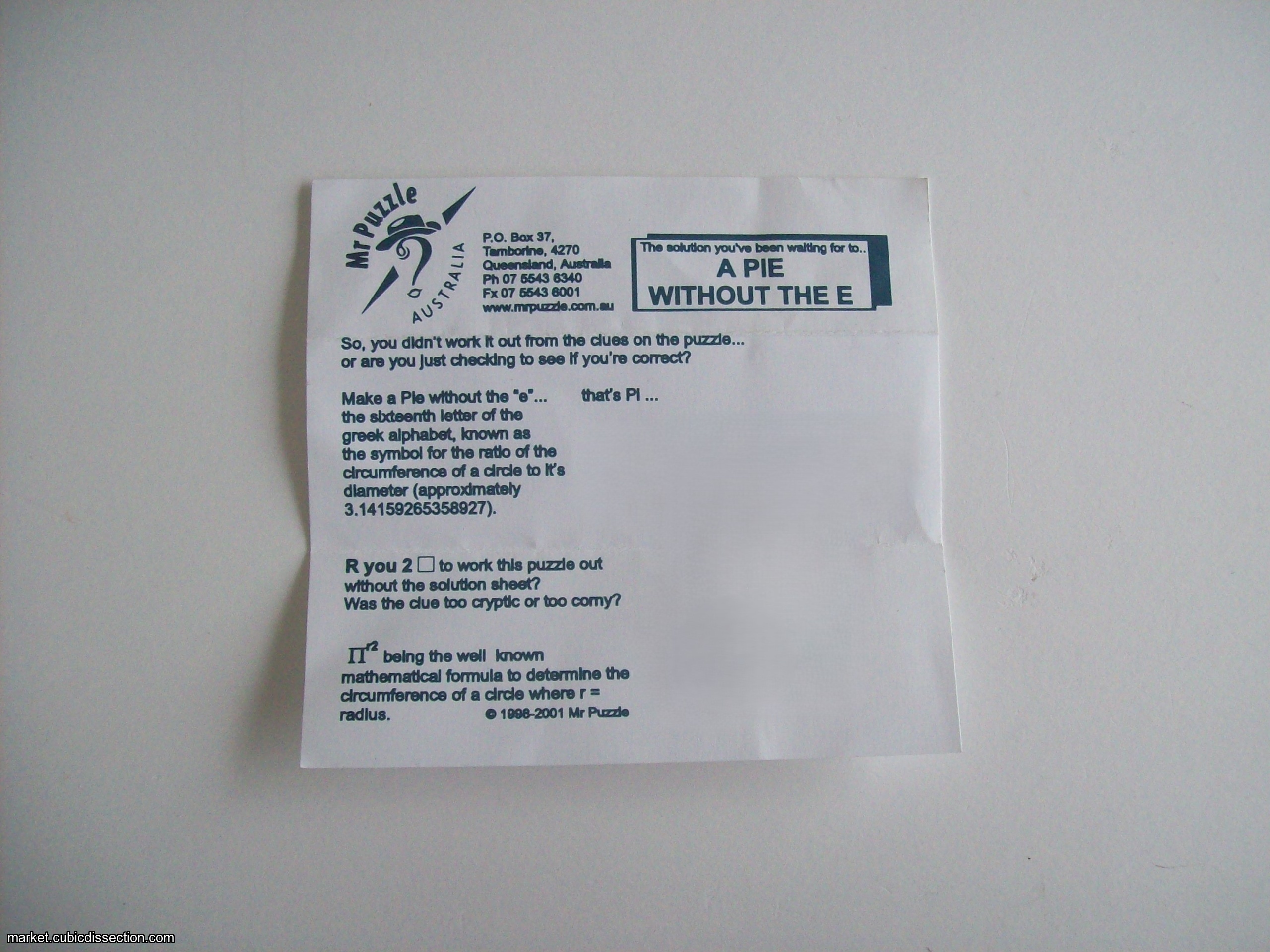 A: 6 pieces “A PIE WITHOUT THE E” from Mr. Puzzle