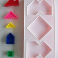 The goal at A is to assemble the puzzle pieces in such a way that a double T is formed.
