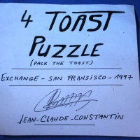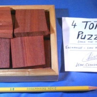 IPP17 exchange puzzle. Pack the four pieces into the tray. Solution included with the puzzle but not shown on the auction website.