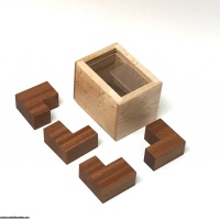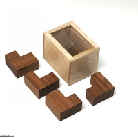 Back by popular demand, 4L is one of our favorite designs. This diabolical packing puzzle seems simple, yet the solution is anything but - 4L is FAR trickier than it looks. The goal is to pack the four L-shaped pieces into a very simple box. There are two different types of L pieces (fat and thin) and several possible configurations. The solution is creative and devious and earned Mr. Hashimoto an honorable mention at IPP 2015