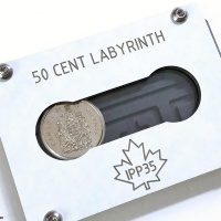 50 Cent Labyrinth was designed and manufactured by Robrecht Louage. It was David Pollen’s exchange puzzle at IPP 35 in Ottawa Canada. The goal is to get the Canadian 50 cent coin free of the puzzle.