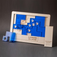 There are two wooden pieces and the 6 main pieces. If you put one of the wooden pieces inside the tray you have either a 10x11 voxel tray or a 8x14 voxel tray.