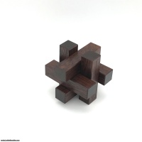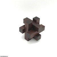 Another brilliant design from Hu that's not what it seems. This six piece puzzle is actually a level 4.2 masterpiece which uses pins, holes and notches to move a lot more than you would expect. Moderate in difficulty; high in entertainment value! This is a very unique and deceptive design.