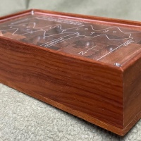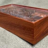 There are two choices of wood for the tiles. Either 1. Western Australian Jarrah (red toned wood) SOLD OUT or 2. Queensland Blackbean (brown streaky type wood). The frame of the puzzle is made from Papua New Guinean Rosewood.