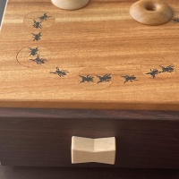 By the way, I made the shape of the drawer knob a little different. The shape is often likened to ants or butterflies, in woodcraft. I heard it is called “dovetail” in English.