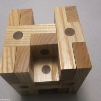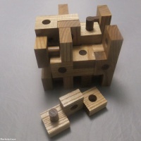 Fit and construction is very nice on this puzzle, not too tight, not too loose, just right. Brian made the puzzle with some fancy-dancy gold pins. I couldn't find any gold-plated walnut, so my version is offered at a 71% discount off his price :)"
