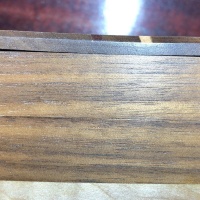 The top has some slight cupping (see pictures) and a couple of the boards have slight warping. A couple of very small dings and scratchesThe box works very well.