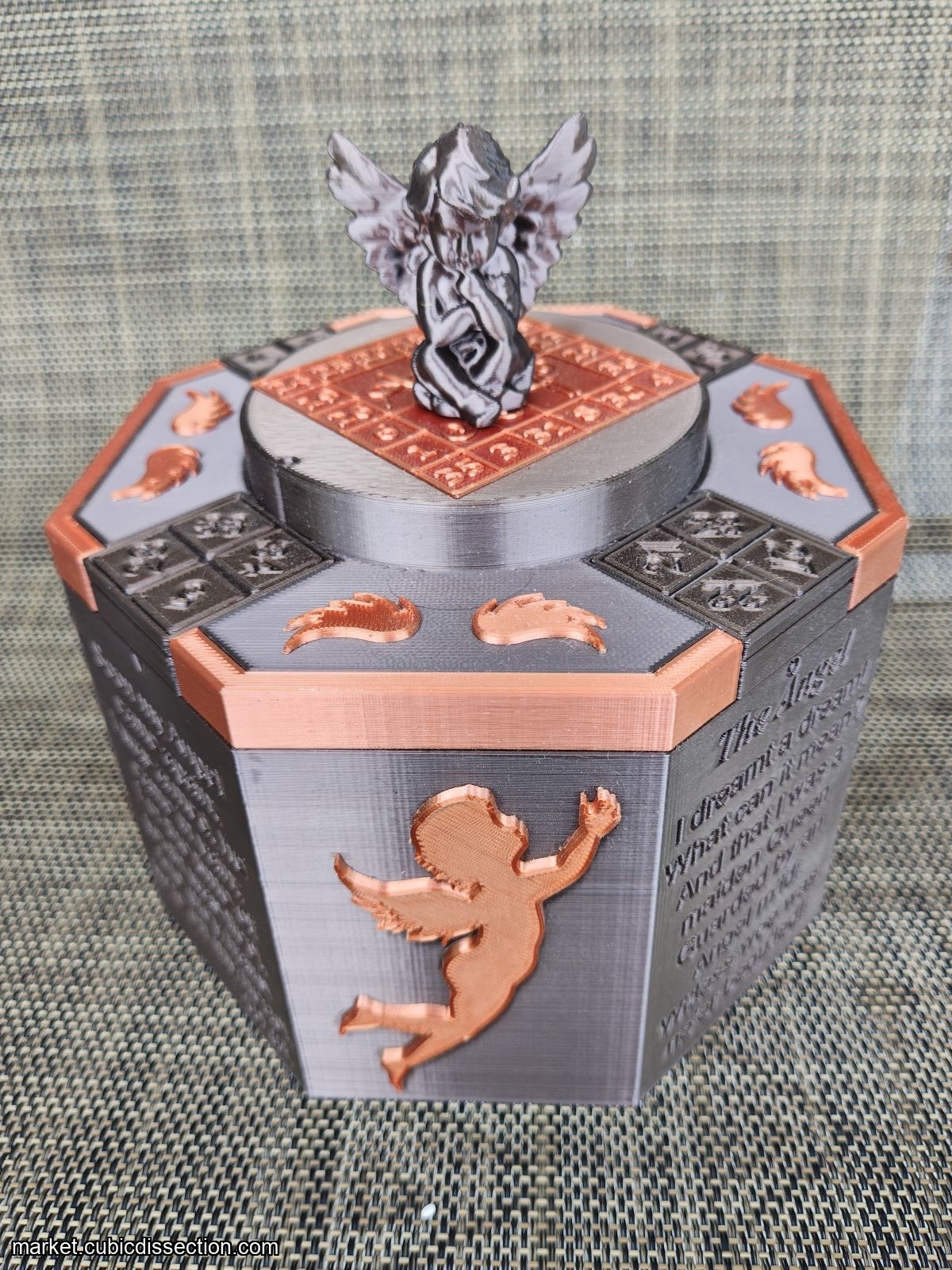 The Angel Cryptex 3D printed puzzle box is a large, beautiful and unique creation!