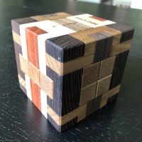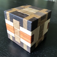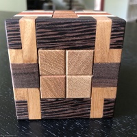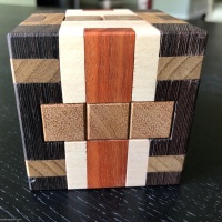 This is a very challenging design - the cube will ultimately come completely apart into 25 separate pieces. Burrtools file available upon request. Note that it appears externally the same as Arne's Cube (also by Eyckmans) but is in fact a completely different (and somewhat more difficult) design internally.