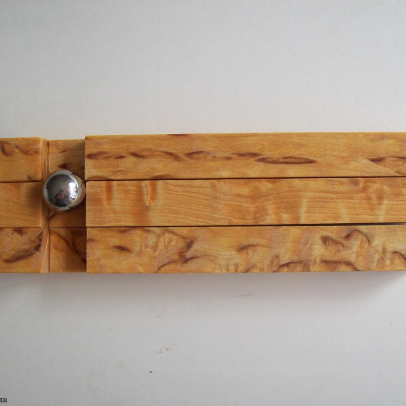 Balance the 3 wooden pieces on the steel ball. Only the steel ball is allowed to touch the surface of the table.