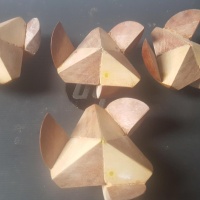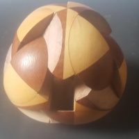 THIS ONE IS THE BALL VERSION WOODTURNED, DERIVATIVE STRUCTURE IS A RHOMBIC DODECAHEDRON