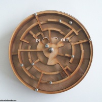 Drop the ball into “IN” and manoeuvre it through the mazes to “OUT”.