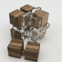 I'm a sucker for combined board and stick burrs that display well when made with acrylic. Band Cube is one of the best such examples I've seen! Constructed with fine hardwoods and precision laser cut acrylic, it really does look great and will nicely compliment the other "jewel" type puzzles I've made in the past. With a level 5.8.2 solution, it's moderately difficult.