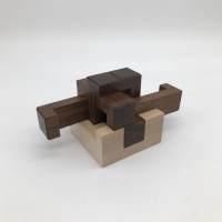 Basket Burr is similar to Sextbord in that it uses burr pieces captured in a frame. However, Basket Burr goes the other direction in difficulty, with a much simpler level 4.5 solution. Trivial to disassemble and not too hard to reassemble, Basket Burr nonetheless is fun for beginners or those who don't have the patience for the super high level burrs (I name myself among them!).