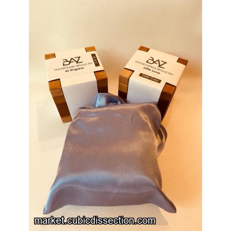 “The Little Love (17.1.4) is a 3 piece split open frame 5x5 cubic puzzle designed by Alexander Magyarics in 2021. When solved, the pieces will fill the void spots on the inside of the cage with open voxels. It looks simple, but it's got an interesting mechanic that will keep you guessing even after you take it apart.