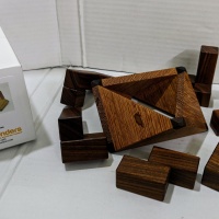 This just seems too easy! Large triangular openings on both sides of the box should make this one a quick solve right? Wrong! If you like packing puzzles, you should give this a try. It is also a great puzzle to hand to a novice puzzler. By looking at it they will be confident they can solve it quickly. Then you can enjoy watching their frustration grow as they fight to find a solution.