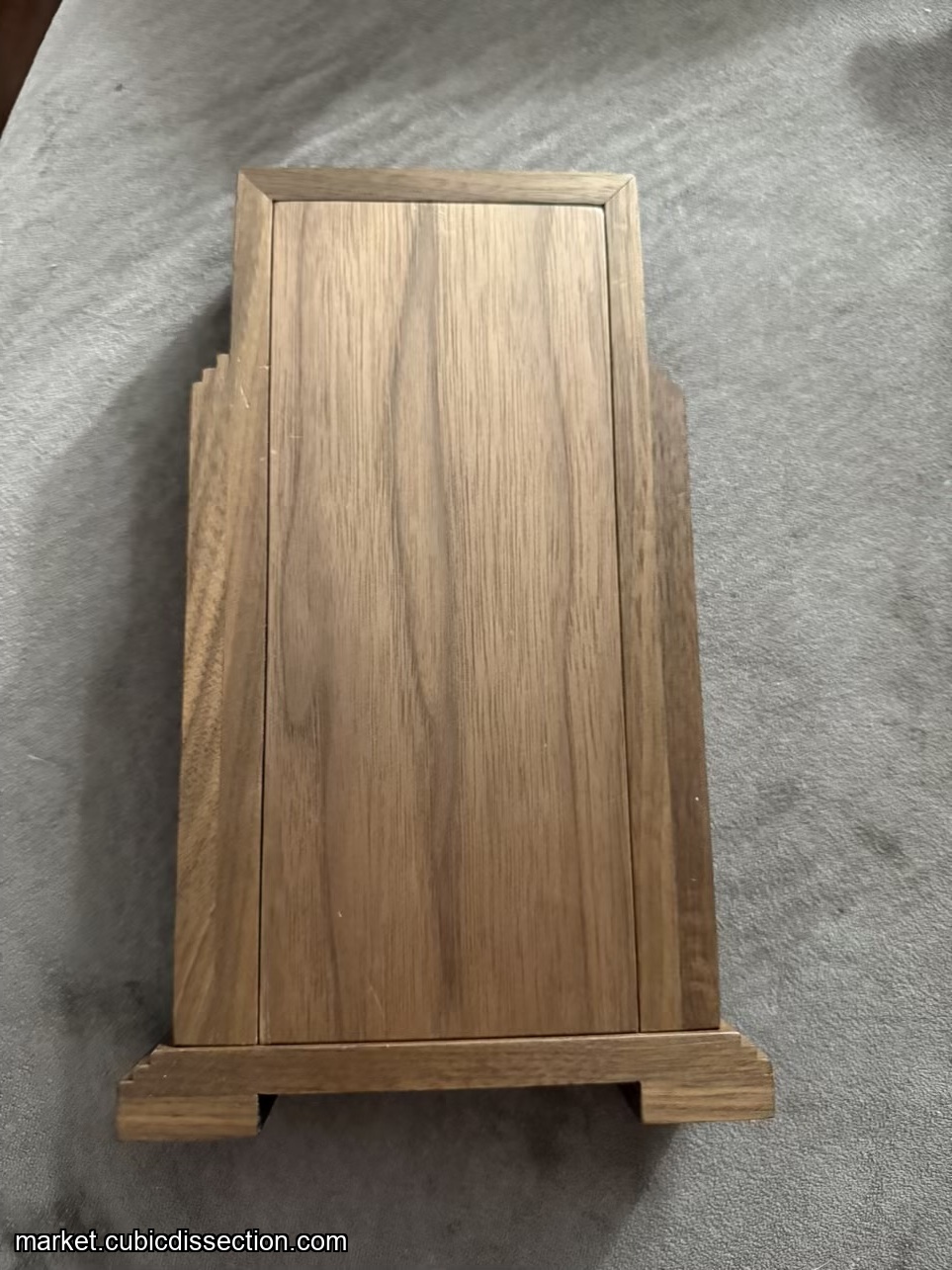"This classic Art Deco Style Mantel Clock will be produced in Black Walnut and has a functioning quartz clockworks. It can sit on your shelf or mantel and nobody would ever guess that it is actually a puzzle box."