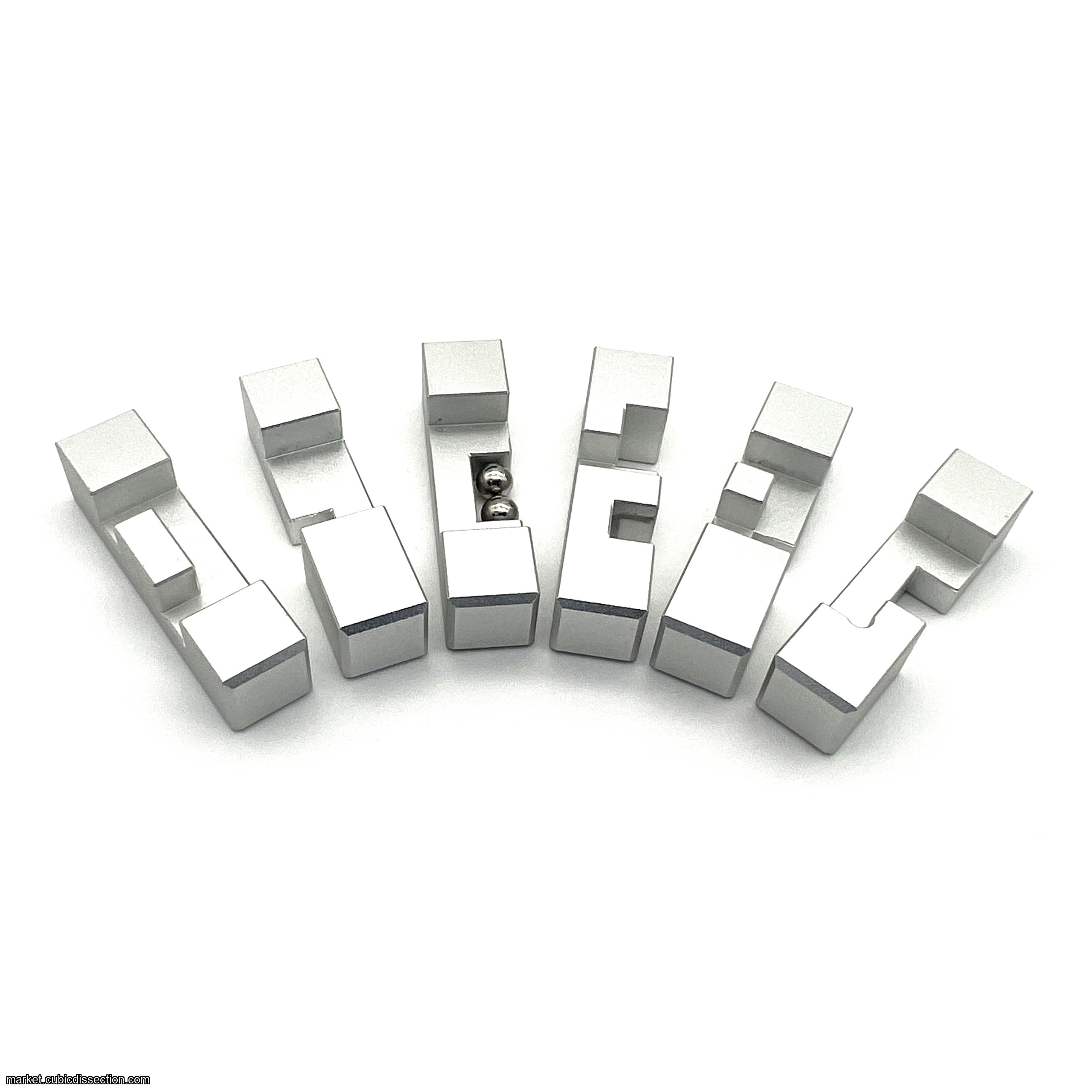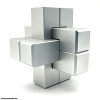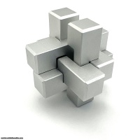 As longtime fans of Bill Cutler's many engaging and unique interlocking burr puzzles, we are excited to release his Ball Bearing Burr design in metal. The normal six-piece assembly is complicated by the addition of two stainless steel ball bearings which must be placed in the correct location before assembly. Once the puzzle is assembled, the bearings can move about within the internal space, requiring you to maneuver them back into the right location in order to unlock the pieces and begin disassembly. This unique concept makes it stand apart from other, more typical six-piece burrs, and if you're a fan of the archetype then this is one you will definitely want to have in your collection.