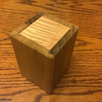 The following description is from the original Cubic Dissection listing, written by the late, great, Eric Fuller:Blah Box is the result of the accumulation of ideas I had while trying to design a simple mechanism for the box containing the DDD Burr Puzzle. I wanted to make a simple trick opening mechanism for DDD, but in the end, discarded the idea because it would overly increase the price of the puzzle. I did come out of the design session with some solid ideas, which, when combined, turned into a rather interesting box on their own. I was feeling rather "Blah" about my failure with DDD and decided to name this new box after that feeling.