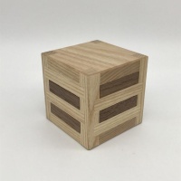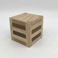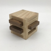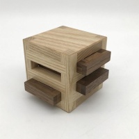 The second puzzle in this update by Perez, Board Burr Rack looks quite simple. Simply slide four burrs into the rack spaces created by the frame. Easy, right? Unfortunately the two cubes trapped inside the rack makes that task substantially more difficult. Each board move affects its neighbors due to the two unit size of the cube it's interacting with, creating a shifting maze of confusion. When fully assembled, none of the boards are able to be completely removed without manipulating the cubes inside. Lots of fun, lots of frustration! This puzzle is shipped assembled.