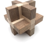 Boron is a moderately difficult puzzle that displays like a piece of sculpture once it's solved. The 12 pieces are made with contrasting hardwoods and precision-crafted in our North Carolina workshop. Its interlocking nature means that several pieces have to shift around to release the first piece. This puzzle is a lot of fun and a great addition to anyone's collection, beginner or advanced.