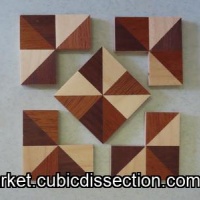 This puzzle is very nicely made of different woods (single wood pieces laminated with 3 different types of wood).