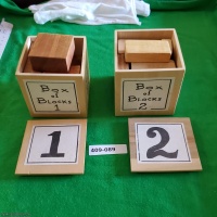 Box 2 is a 12 piece box packing puzzle, with handmade paper labels on five sides.