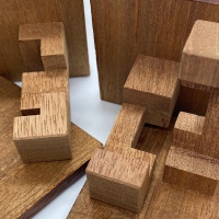 A rare puzzle by Tom Lensch. Boxed Burr from IPP17. It is a 6 piece burr in a box. Not overly difficult but interesting. This is an older puzzle.