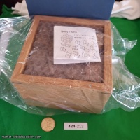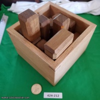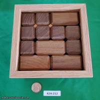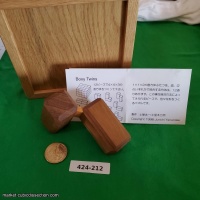 Junichi Yananose aka Juno designed and crafted (it's really gorgeous!) this 12 piece 3D packing puzzle with 12 different challenges. Designed in 1998, NIB as shown with original paperwork. A vintage Juno gem. Each piece in Boxy Twins consists of two 2-unit pieces joined in a variety of ways. Of note is the quality of the joinery, which makes this puzzle rare in its category. The box is nicely splined with contrasting dark wood.