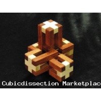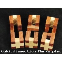 Frank's designs can be few and far inbetween, but are generally worth waiting for. "Burr Bones" is no exception. This three piece devil is a crafty level 24 solution with TONS of dead ends and trickiness. The skeletonized traditional three piece shape looks stuning in contrasting woods, and the completed puzzle is surprisingly stable.