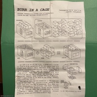 Burr In A Cage comes with its original instruction and solution sheet wrapped around the puzzle, as distributed at IPP20.