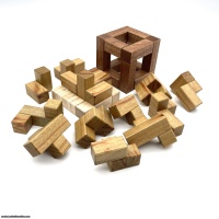 The puzzle is a set similar to the Penultimate Burr with multiple problems to be solved. The set consists of a 4×4×4 cage with a 2×2 opening on each face and 14 non-planar penta/tetracubes. The objective is to fill the cage with four of the pentacubes and three tetracubes to complete a 4×4 cube. A jig is provided for testing possible solutions outside the cage, as well as a box which doubles as a display plinth for the solved puzzle. This is a difficult puzzle, with two assemblies having a unique sixteen move solution!
