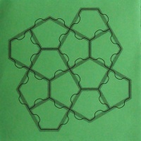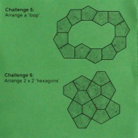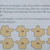 The complete set consists of 12 different pentangles with all possible combinations of inside and outside curved long sides. Pentangles with all identical curved long sides are excluded. Each piece “a” is the mirror image of the corresponding piece “b”. Flipping is not allowed. Always the URL must be on stop.