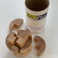 CyliPlex (3” x 3” x 3 ¾”) – The goal is to arrange the various pieces into a solid cylinder.  (The storage tube in long enough to hold the pieces in an unsolved state).