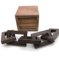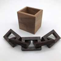 Chain Store is a very unusual puzzle. The goal is simple; to fit the chain with its five interconnected links completely into the box. The solution is not so simple and very satisfying. I've been excited to make this puzzle for a while, and am very happy with the results.