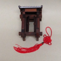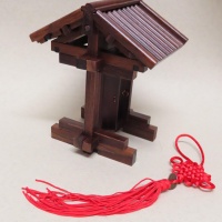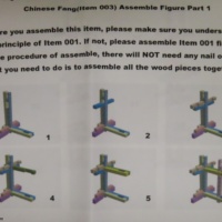 The goal of this puzzle is to assemble the traditional chinese house from the 34 (if I counted correctly) wooden pieces.