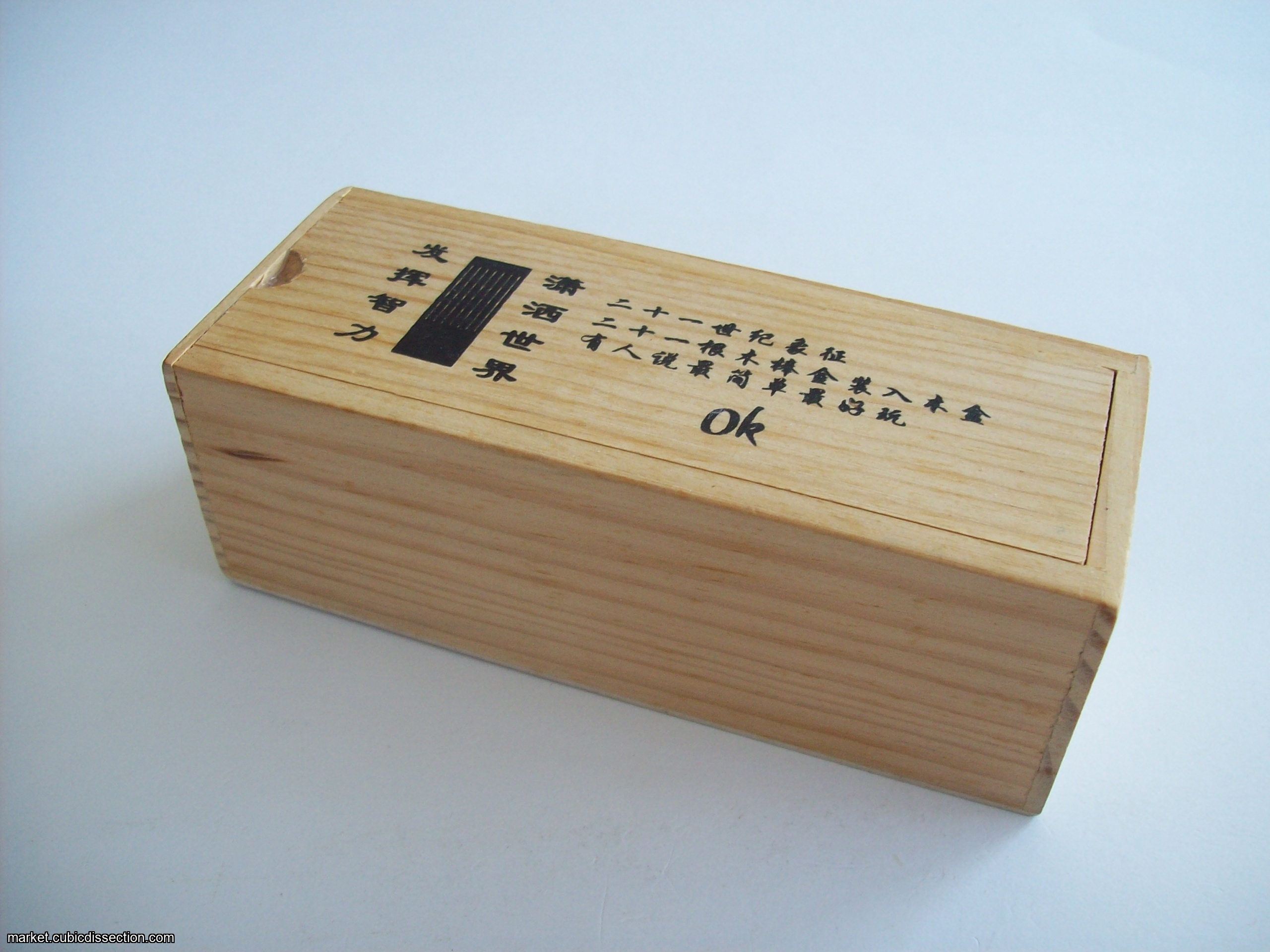 Classic KongMing puzzle game with a wooden box and 21 sticks of various lengths.
